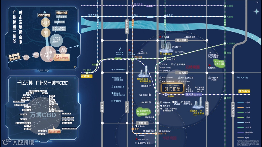 万博CBD在区位上位于番禺华南板块核心地段,北承珠江新城、琶洲会展中心、南接南沙自贸区,西连广州南站,占踞广州CBD中轴,广深港澳科技走廊与广深港高铁经济带双廊交汇的黄金C位,又属广州南拓轴与珠三角东西岸融合带核心,未来CBD价值不言而喻。