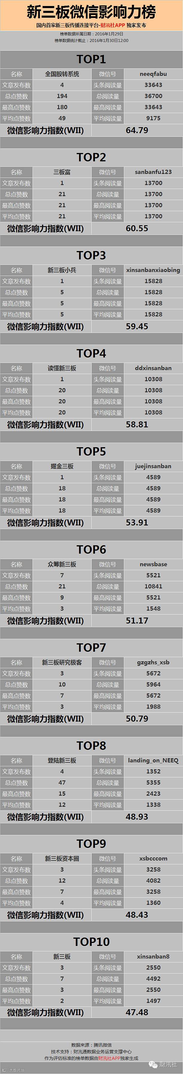 新三板微信影响力榜(01.30)|日榜