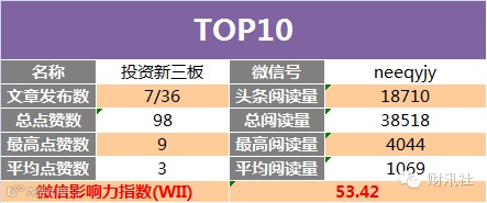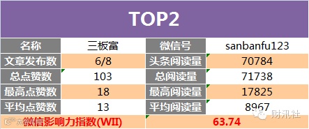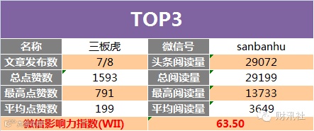 9、微信影响力指数(WII):根据公众号的头条阅读量、总阅读量、最高阅读量、平均阅读量、总点赞数、最高点赞数、平均点赞数等多项公开数据,进行指数加权运算得出,科学全面的反映公众号综合价值的一项指标。
