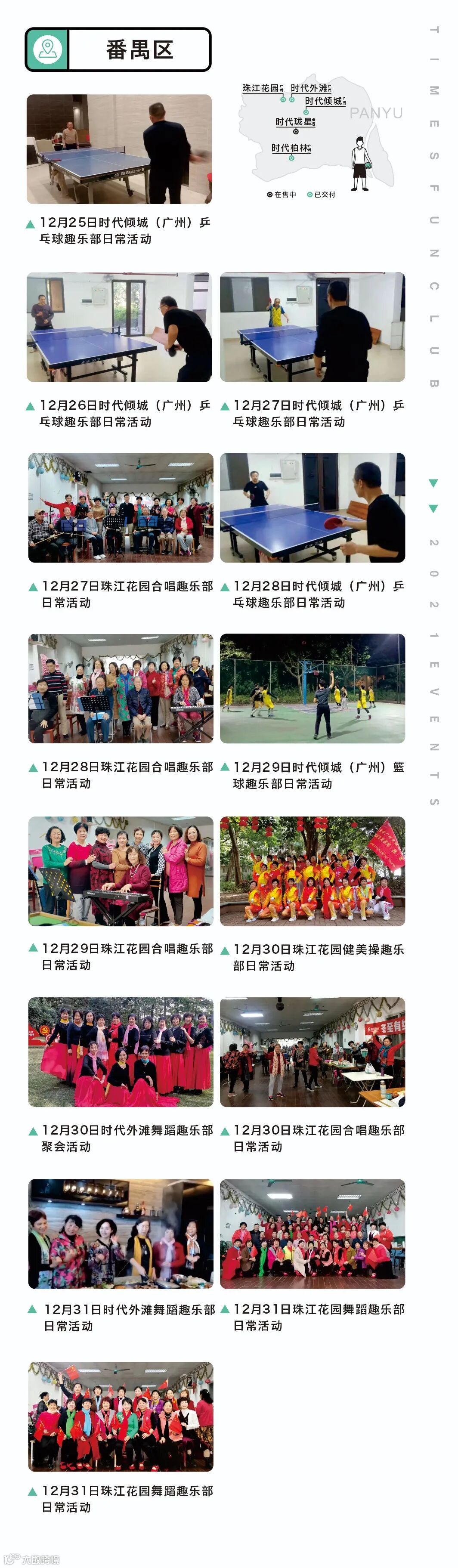 目前,广州时代趣乐部已经覆盖天河、海珠、白云、番禺、黄埔等区域共21个社区,建立了93个趣乐部,共有6926名志同道合的时代业主加入了趣乐部的大家庭。