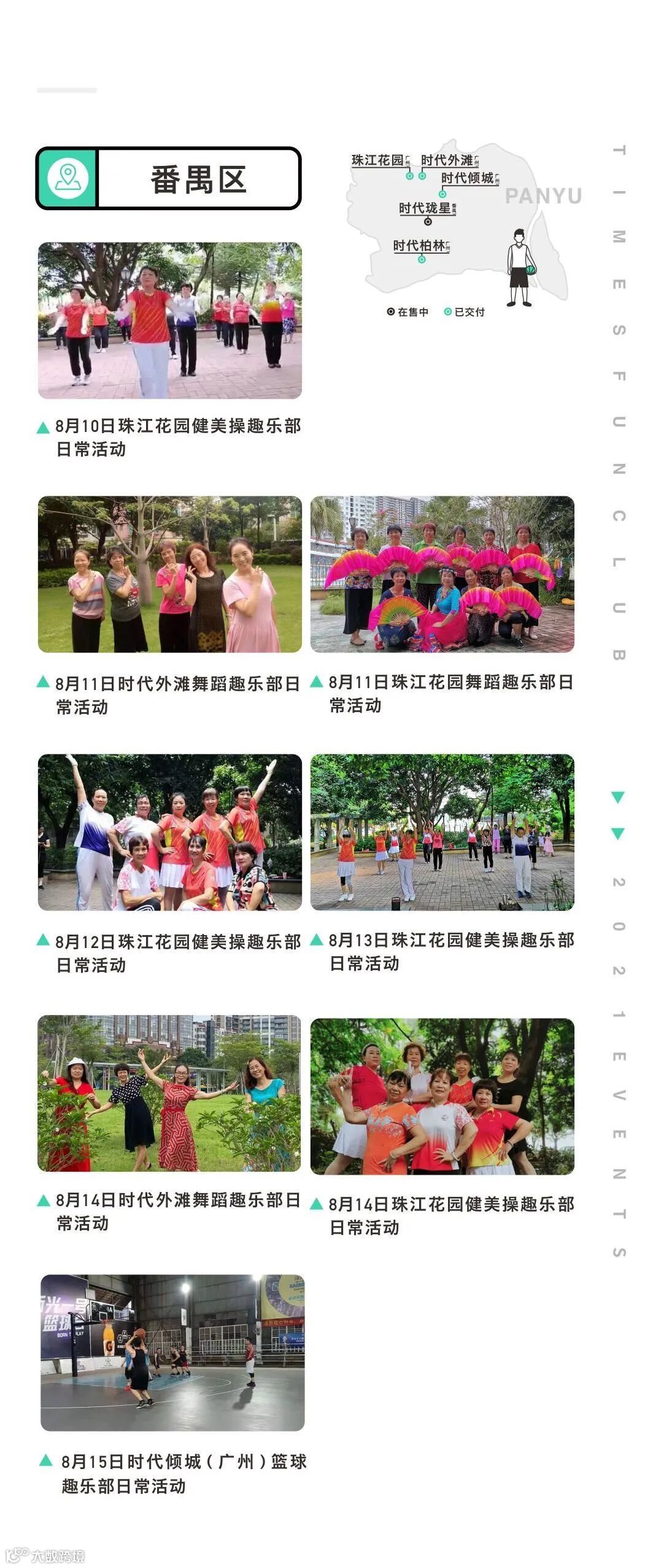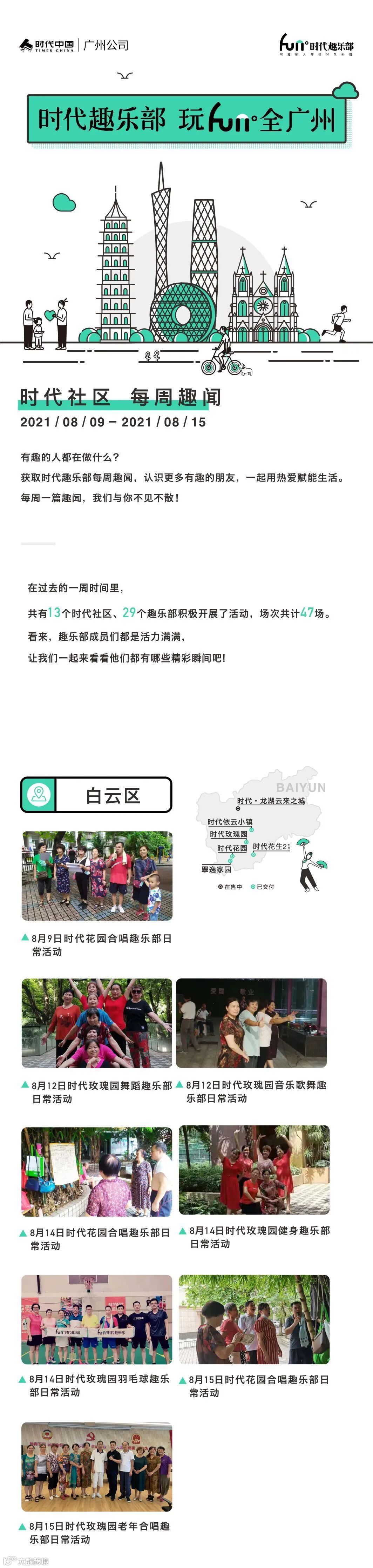目前,广州时代趣乐部已经覆盖天河、海珠、白云、番禺、黄埔等区域共20个社区,建立了89个趣乐部,共有6445名志同道合的时代业主加入了趣乐部的大家庭。