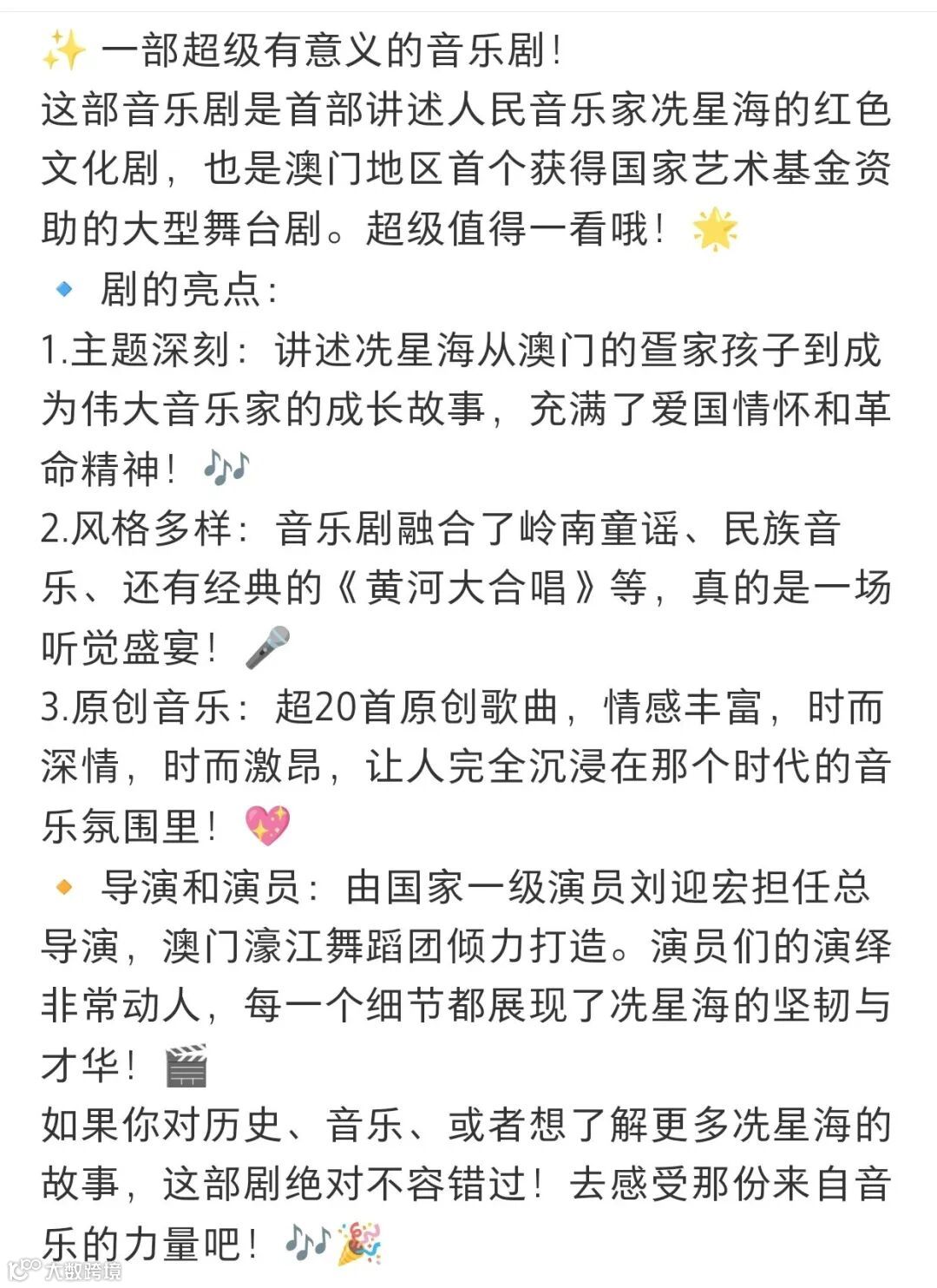 《星辰大海·冼星海》音乐剧以冼星海诞辰120周年为契机,通过音乐剧的形式,将这位人民音乐家从澳门疍家少年到延安“黄河之子”的传奇人生,浓缩于两个小时的舞台时光。