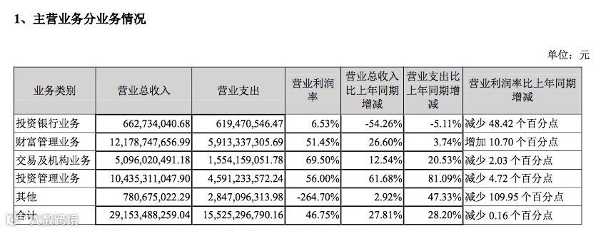在投资银行业务总收入腰斩之下,广发证券的业绩增长主要依靠财务管理业务和投资管理业务支撑,尤其是投资管理业务营收104.35亿元,同比增长高达61.68%。