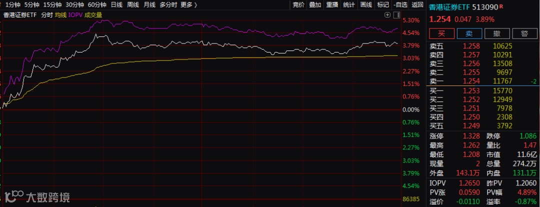 比较有意思的现象是,在香港上市的中资券商股却火了,香港证券ETF大涨近4%。广发证券大涨近10%,中信证券大涨近8%,中金公司大涨超7%,其他券商股涨幅大多也在5%以上。