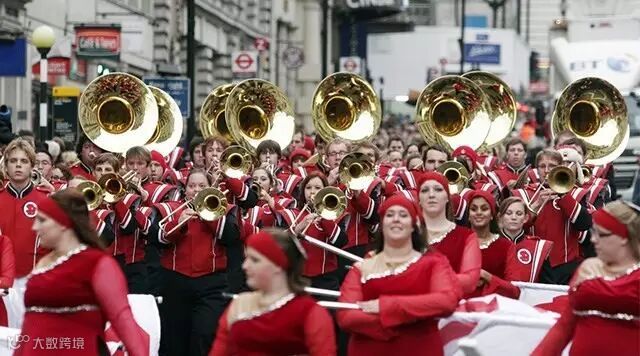 孩子们组成乐队,穿上新衣服,拿着口琴和手风琴,列队在街上吹奏。成年人则手持彩旗,跟在后面呐喊唱歌,欢庆新年。