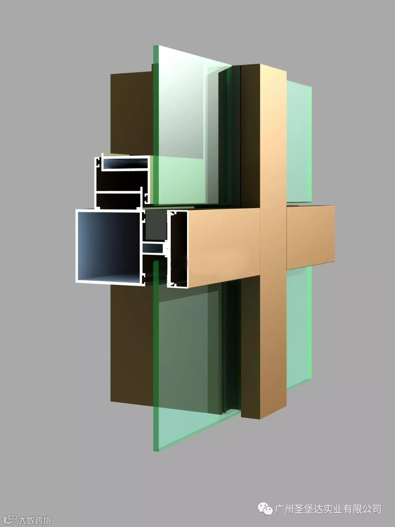 明框玻璃幕墙是最传统的玻璃幕墙形式,玻璃采用镶嵌或压扣等机械方式固定,工作性能可靠,使用寿命长,表面分格明显。下图是基本构造图: