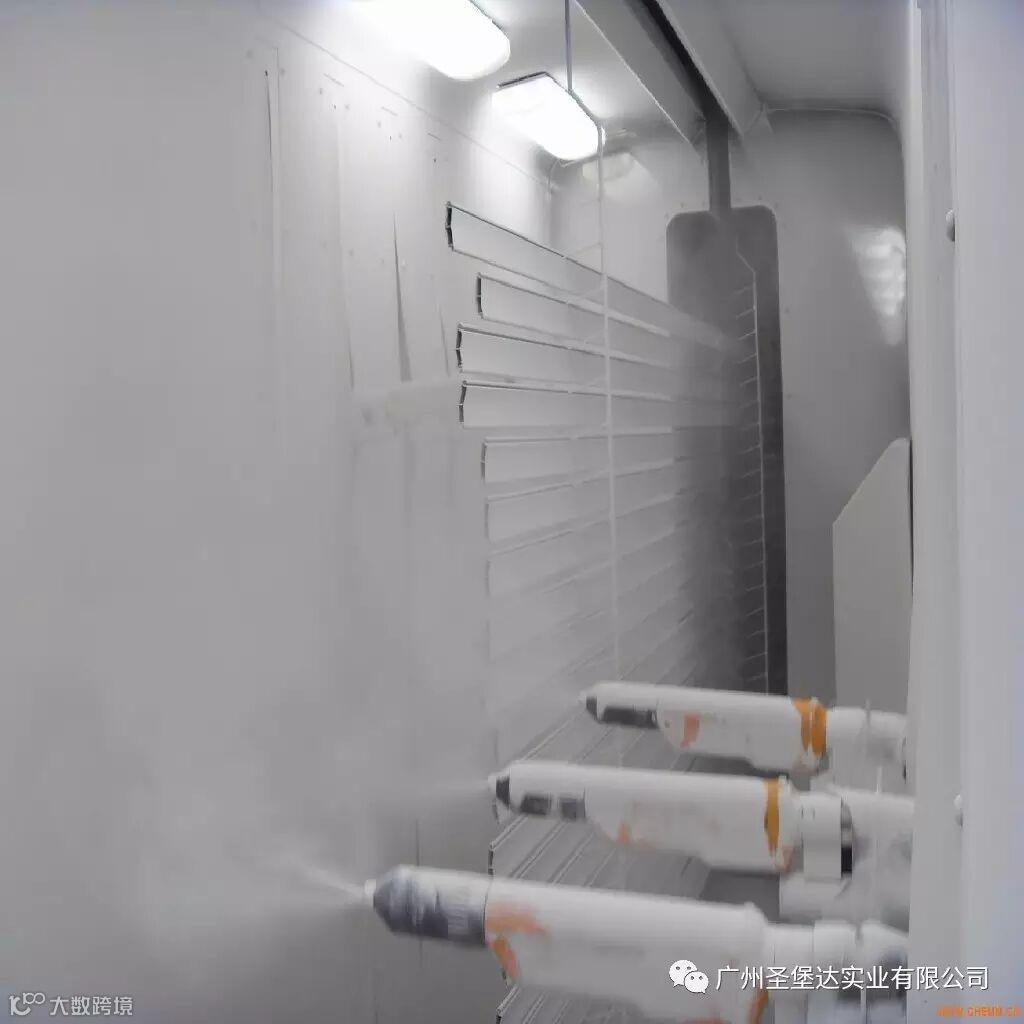 粉末喷涂―――粉末涂料在静电场(60~90KV)中带负电,高速飞向工件表面加热融熔固化形成漆层