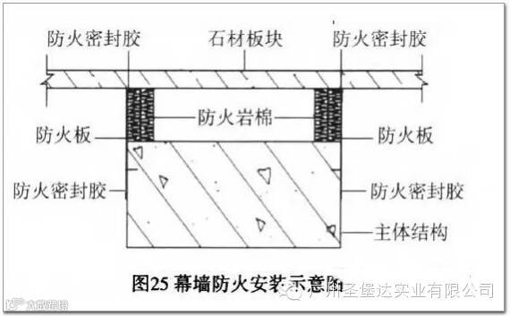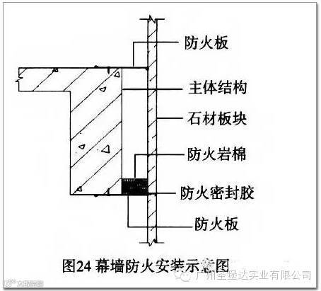 石材幕墙通常是安装在建筑实体结构位置,有时也会安装在结构洞口的位置,当遇到这种情况时,为了防止建筑物在突发火灾时危害到其他人群或财产的损失,通常在实施石材幕墙的施工安装时采取必要的防火安装措施。
