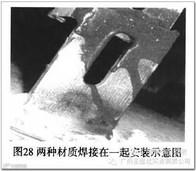 当石材幕墙的板块挂接安装件采用不锈钢材料时,严禁将不锈钢材质的挂接件直接与碳素结构钢材质的横向或竖向龙骨焊接固定,必须采用机械螺栓固定安装,由于这是两种不同的材质,焊接后一段时间将会出现焊缝开裂脱落,直接给石材幕墙带来严重的安全隐患;如图28就是非常不合理的安装方式。