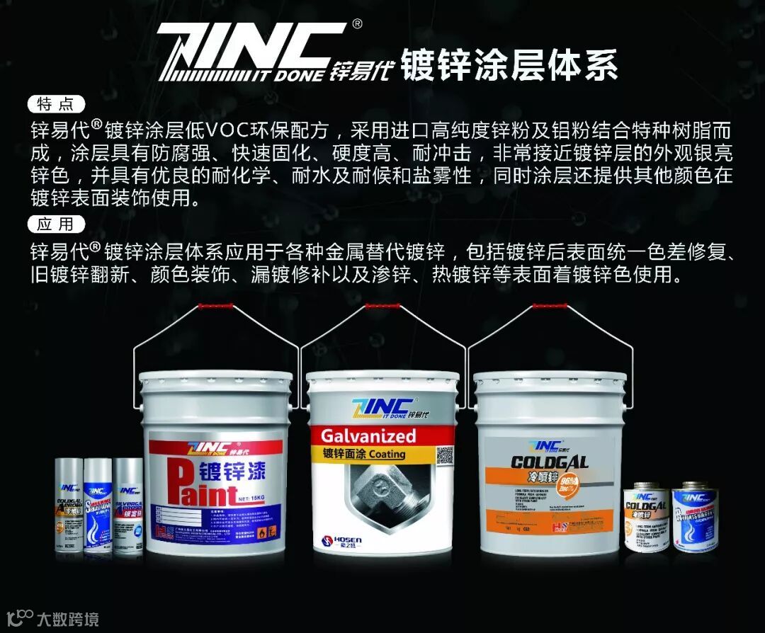 应用:锌易代镀锌涂层体系应用于各种金属替代镀锌,包括镀锌后表面统一色差修复、旧镀锌翻新、颜色装饰、漏镀修补以及渗锌、热镀锌等表面着镀锌色使用。