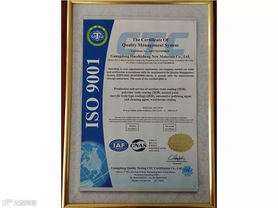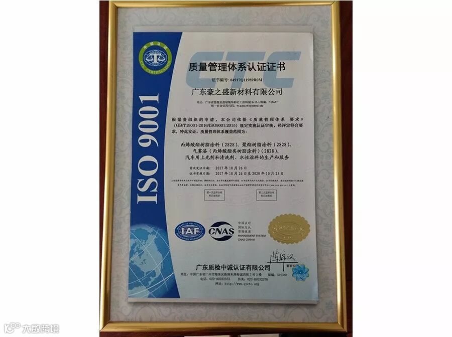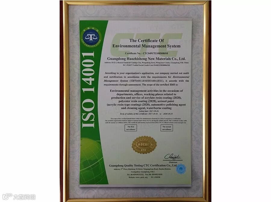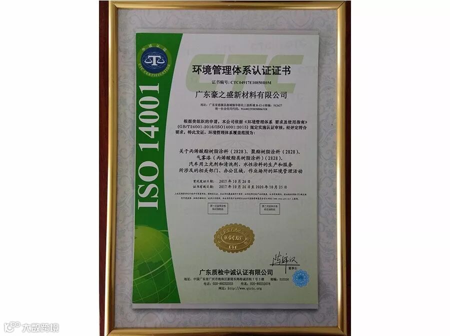 恭喜广东豪之盛新材料有限公司正式通过ISO 14001环境管理体系认证及ISO9001质量保证体系。