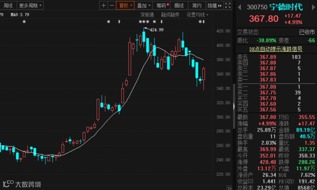 二级市场上,宁德时代2日震荡走高,截至收盘涨4.99%,股价报367.8元,总市值达8568亿元。