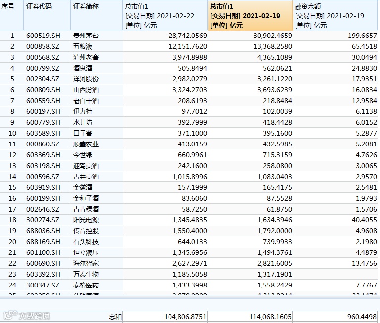 2月22日,两市延续个股普涨的八二格局。周期股在有色铜的带领下全线爆发,并且延伸至钢铁板块。但前期持续上涨很长时间的基金抱团股(谓之“不死鸟”)迎来猛烈抛盘,排跌幅榜前列的个股多为明星股。山西汾酒跌停,五粮液一度逼近跌停。据粗略统计,抱团资产单日蒸发近万亿元。虽然收盘两市仍有2612只个股上涨,但相对于盘中超过3500只股票上涨的态势,尾盘不少个股被抱团资产带歪。
