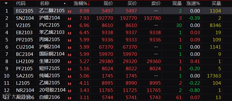 从期货市场的表现为看,强周期品种主力期货全线发飙。
