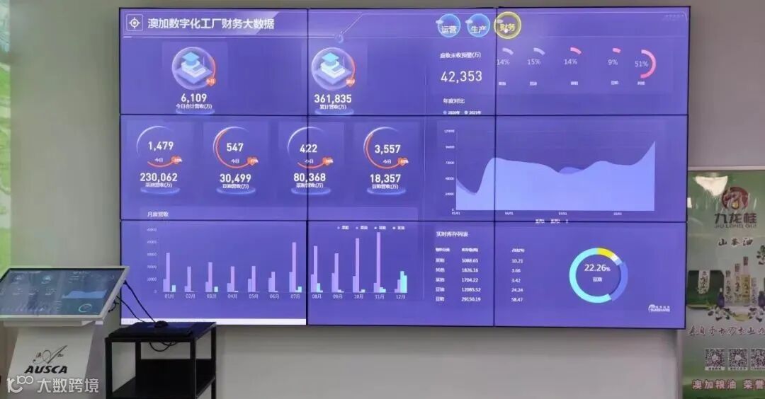 在澳加粮油的生产车间现场,设备与系统成功互联,各项生产数据及时回传金蝶云星空,自动化高效作业,不浪费任何资源。车间关键位置悬挂电子看板,生产数据全自动采集,生产进度、订单完成状况等信息均可通过数据大屏实时展现,车间生产透明可视化。加上云之家的移动应用,对生产、销售、库存等数据实时掌握和业务流程高效审批,能快速对市场变化做决策,大大提升企业竞争力。