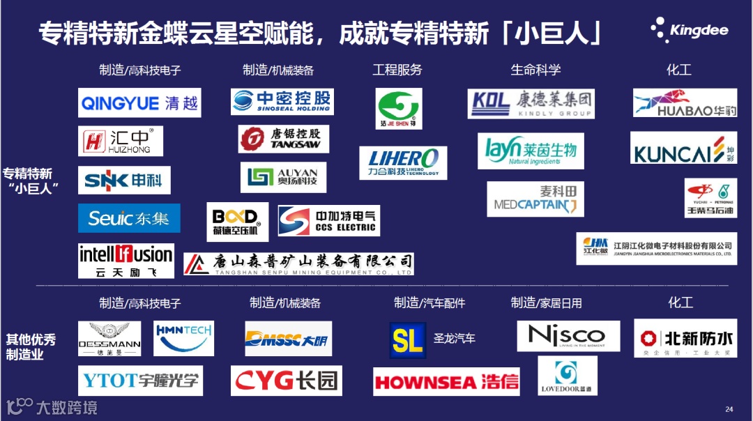 金蝶结合多年实践,总结出这样一种新的思维和新的解决方案的架构框架。通过金蝶云·星空的这样的产品体系,我们成就了很多专精特新“小巨人”企业,不管是在制造业还是其他服务型企业,我们都扮演着极其重要的数字化服务提供商的角色。