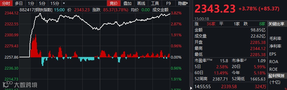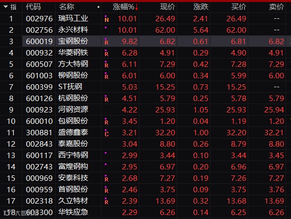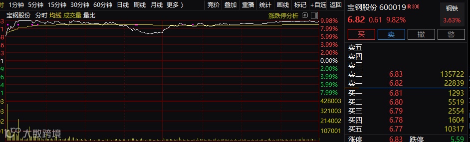 其实,不止宝钢在涨,整个钢铁板块都在涨。