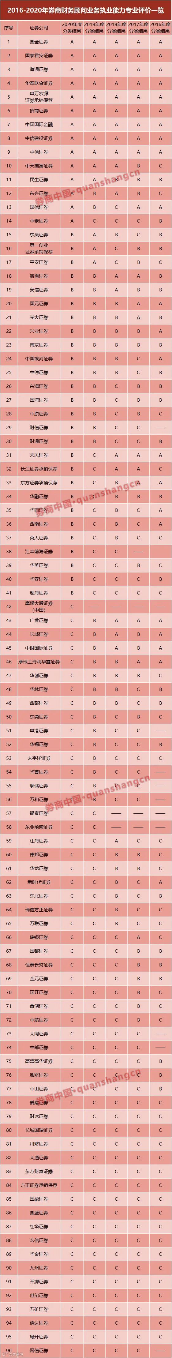 在中天国富证券从“海际证券”变身后,其在财务顾问业务上不断加码,最近三年均保持了A类评价。同样,民生证券在2019年首次获得A类评价之后,也在2020年予以保持。东兴证券、国信证券、中泰证券3家公司则是在2020年新晋成为A类,其中中泰证券过去三年均为C类。