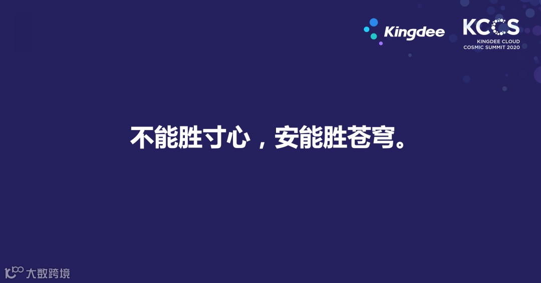 总书记曾说过,“不能胜寸心,安能胜苍穹”。寸心,尺寸之间可以影响天地,这个寸心就是如果你不能主宰自己,怎么能影响他人?“生之主宰便是心”,影响我们的语言意识行为的就是心。什么叫“胜寸心”?我认为是两个层面的含义,第一就是要净化自己的心灵,净心,要不断地反省,不断地挑战自己,不断地去打破或者去消除自己的不宁和贪欲,这就是净化心灵,就是要不断地关照、反省、引导自己这颗心;另外一个层面的含义是明心,就是要相信心中有无尽的宝藏,当困难在面前的时候,要想到我们的内心有比这个困难大得多的一种潜能,相信心中有无尽的宝藏,相信行为作用和反作用,所以明心、净心就能使得我们“胜寸心”。金蝶云·苍穹平台,我们取了苍穹两字,很大程度上是考验我们每个研发人的这颗心,不能胜寸心,你怎能做好苍穹。
