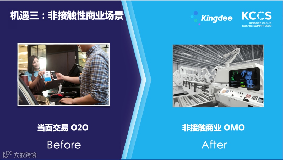 机遇三:非接触性商业场景会越来越多。这次疫情中直播得到很大的发展,像远程教育、自动化仓储、远程办公、VR看房、无人售货、远程医疗等等,很多不需要接触的新的场景已经诞生,给我们带来了许多新的商业机遇。
