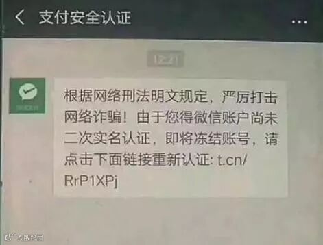 近日,“深圳公安发布”微信公众号发布消息称:多地接到群众举报,称其微信收到账号名为“支付安全认证”发送的消息,要求点击其中的网络链接,进行“微信二次实名认证”,否则将冻结其微信账号。