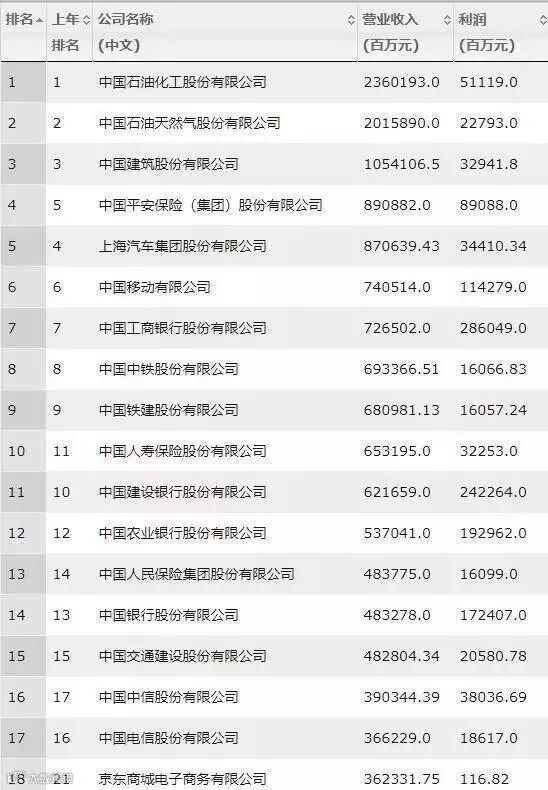 最新《财富》中国 500 强排行榜:中移动第 6,京东第 18