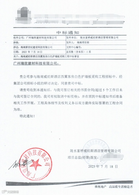 • 项目中标通知书