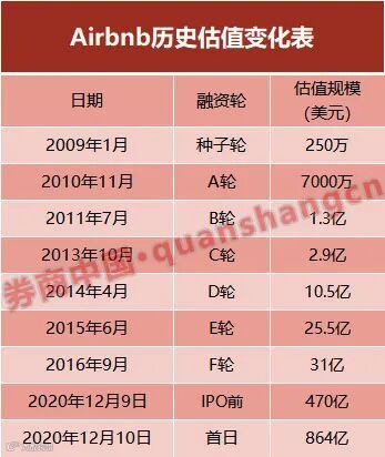 下表是爱彼迎的历史融资记录: