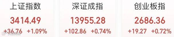 11月23日的大盘一片欢欣鼓舞。沪指放量涨1.09%报3414.49点,深成指涨0.74%,创业板指涨0.72%。两市合计成交9540亿元,北向资金净流入100.51亿元。