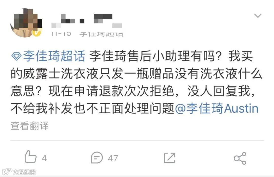 有网友指出,在李佳琦直播间购买的商品售后服务存在问题,一些合作商家的客服态度也不是很好。