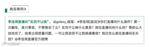“李佳琦直播间卖完不让换”也被当成典型案例点名。