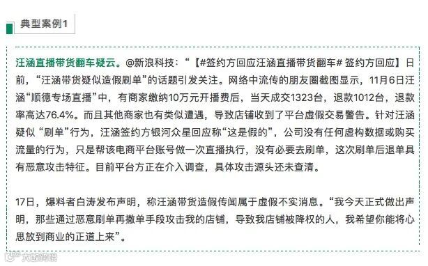 这一事件也成了《报告》中的典型案例——“汪涵直播带货翻车疑云”。