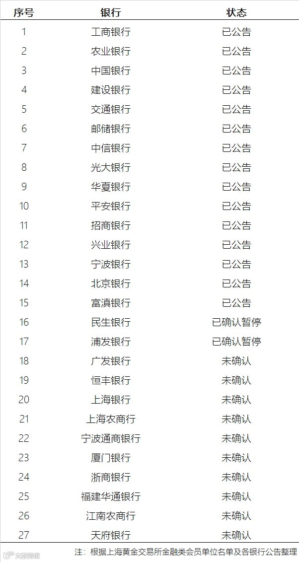 券商中国记者整理上述17家银行公告发现,几乎所有银行都暂停了代理上海黄金交易所个人贵金属业务,部分银行同时还暂停了账户贵金属业务。