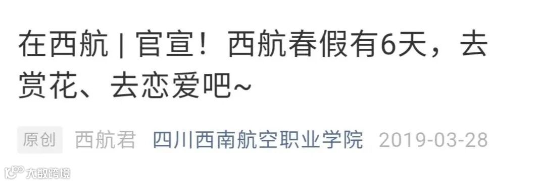 2019年,四川西南航空职业学院在放假时间总量不变的情况下,4月初放6天春假。