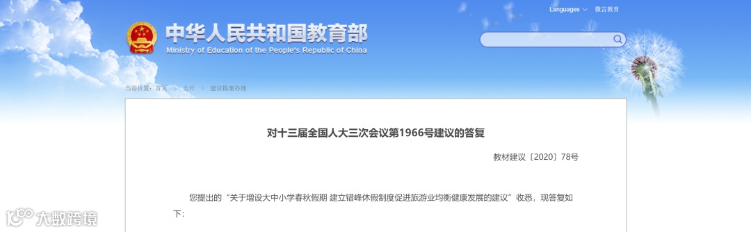 记者注意到,这并非教育部第一次回应与“大中小学春秋假期”有关的建议。