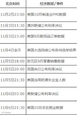 进入11月的第一个周,全球金融市场大事不断。除了美国大选外,美国、欧洲、澳大利亚、英国等主要国家和地区将陆续公布重要经济数据和央行利率决议,这些都将影响全球金融市场走势,可谓全球金融市场的“超级周”。