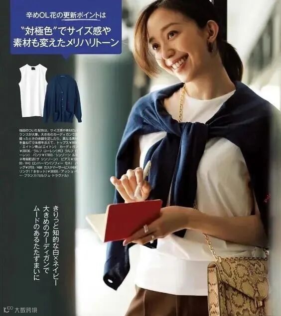 像这件黑色的T恤,中规中矩的设计,让它可以帮助不少大龄女性也收获一些大方的look。更重要的是,颜色之间的配合不能增加沉重感,而是要利用一些浅色单品稀释掉它的黯淡气息。不管在下半身选用的是白色过膝裙还是白色裤装,都能与这款比较简洁的黑色T恤形成色彩之间的互补。