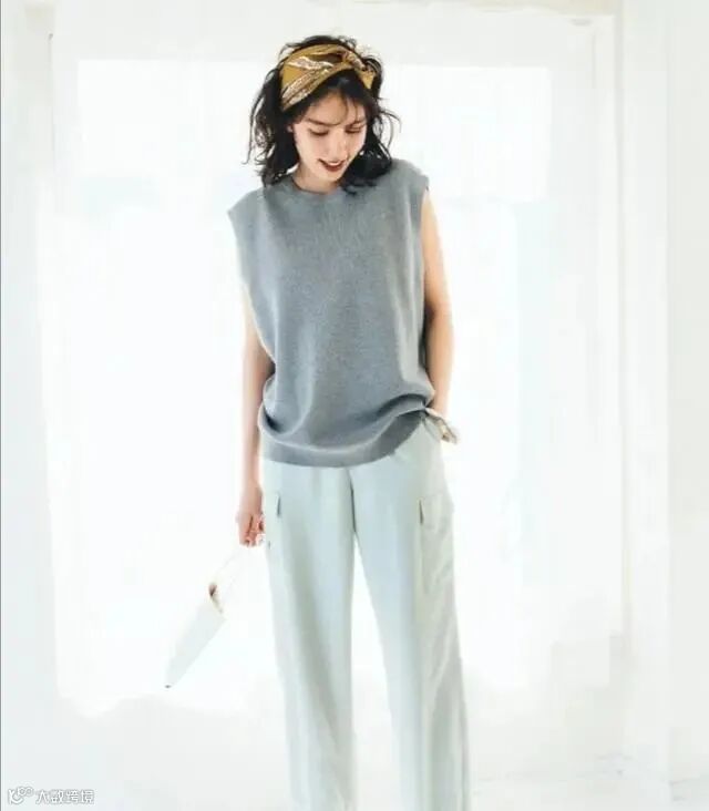 T恤是男女老少都可以选用的单品,如果喜欢清凉一点的风格,可以采用当下特别活跃的无袖T恤,它可以放大随性不羁的感觉,打造出中性的风格。
