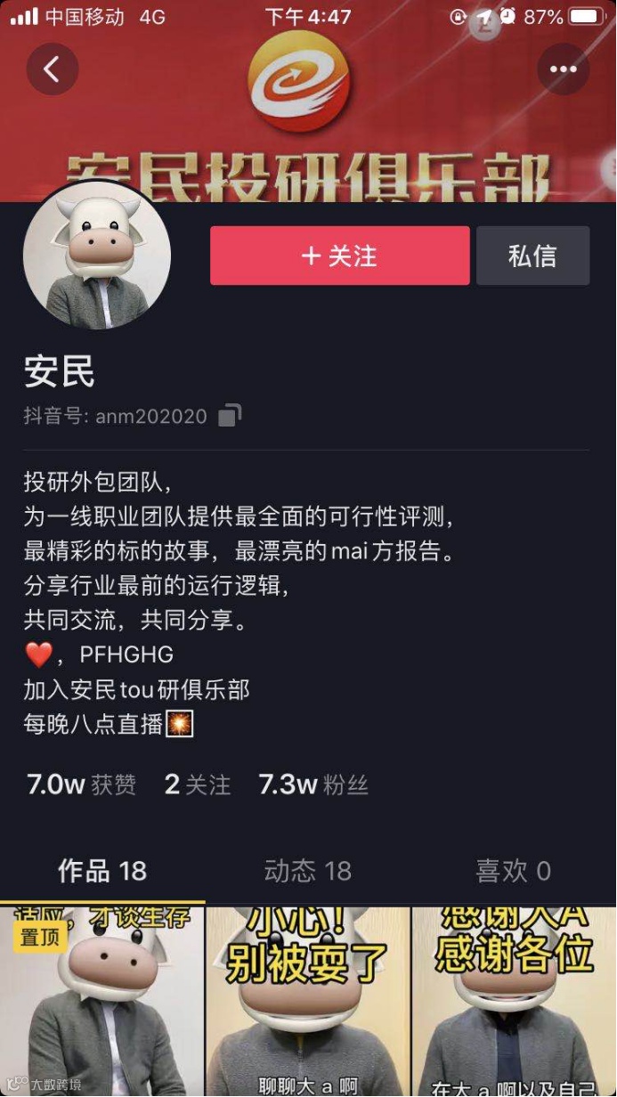 记者当天在抖音APP查询发现,确实有一个名为“安民”的账号,其抖音ID为anm202020,粉丝数量7.3万,发布的视频点赞数量达到7.0万。