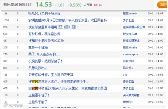 行情数据显示,当天13:30分左右开始,日内表现平稳的我乐家居股价急速跳水,在仅约10分钟的时间里被打至跌停。