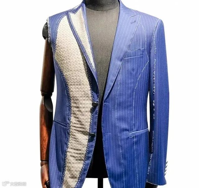 麻衬是西装定制的必选工艺 。麻衬以天然材质的自身弹性作为结构支撑,驳头自然翻折无需熨烫,能完全保留面料的挺括和垂坠感,寿命也更长。当然,麻衬需要手工缝制,难度高、工艺复杂、耗时长,因此成本较高。但比起粘合衬,这些成本物超所值。