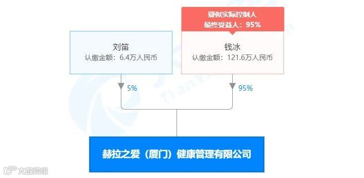 天眼查显示,赫拉之爱全称赫拉之爱(厦门)健康管理有限公司,注册资本为128万人民币,钱女士疑似其实际控制人。
