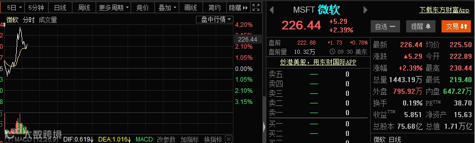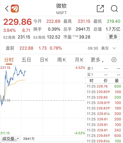 市值来到1.7万亿美元的微软像小股票一样,突然暴力拉升!