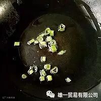 8. 另取一锅,锅中适量油,烧至7成热,下葱花爆香。