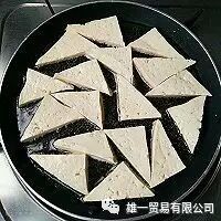 2. 将豆腐切成厚度大约7毫米的三角形。