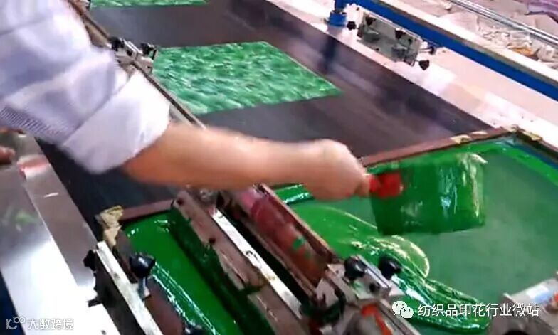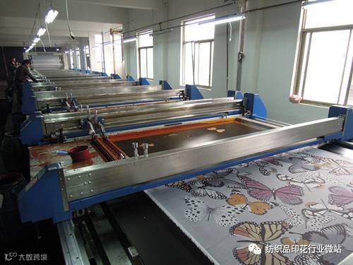 胶浆印花要求在每一套色的过程中有充足的空间来进行干燥,使胶浆表面能马上固化成膜,才能进入第二个套色的印花。当然为了不堵网板,还需要台板有一定的散热过程,所以对全自动印花机的工位数量要求较多。