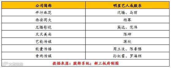 根据股转系统上周六公布的920家创新层企业名单,拥有明星光环的开心麻花、西安同大、龙腾影视、天天美尚、艺能传媒、华谊创星、能量传播、青雨传媒均成功入围。