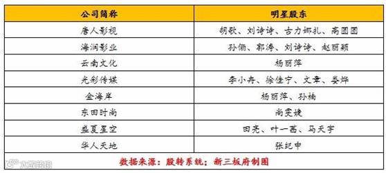 对比那些已上榜的企业,“男神”胡歌、刘诗诗、古力娜扎等持股的唐人影视、“娘娘”孙俪持股的海润影业等无奈落榜。以下是落榜的明星企业名单: