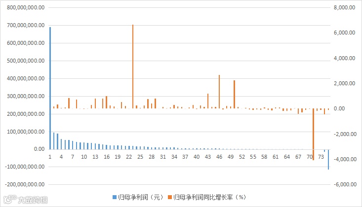 净利润超过1亿元的有1家,恒大文化6.89亿元;净利润1000万-1亿之间的公司有30家,占比最大,为40%;0-1000万元的有25家,占比33.33%;亏损的有19家,占比25.33%,ST春秋亏损最为严重,达1.16亿元。