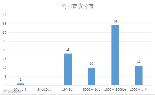 营业收入在3000万-5000万之间是营收增速较快的区域。
